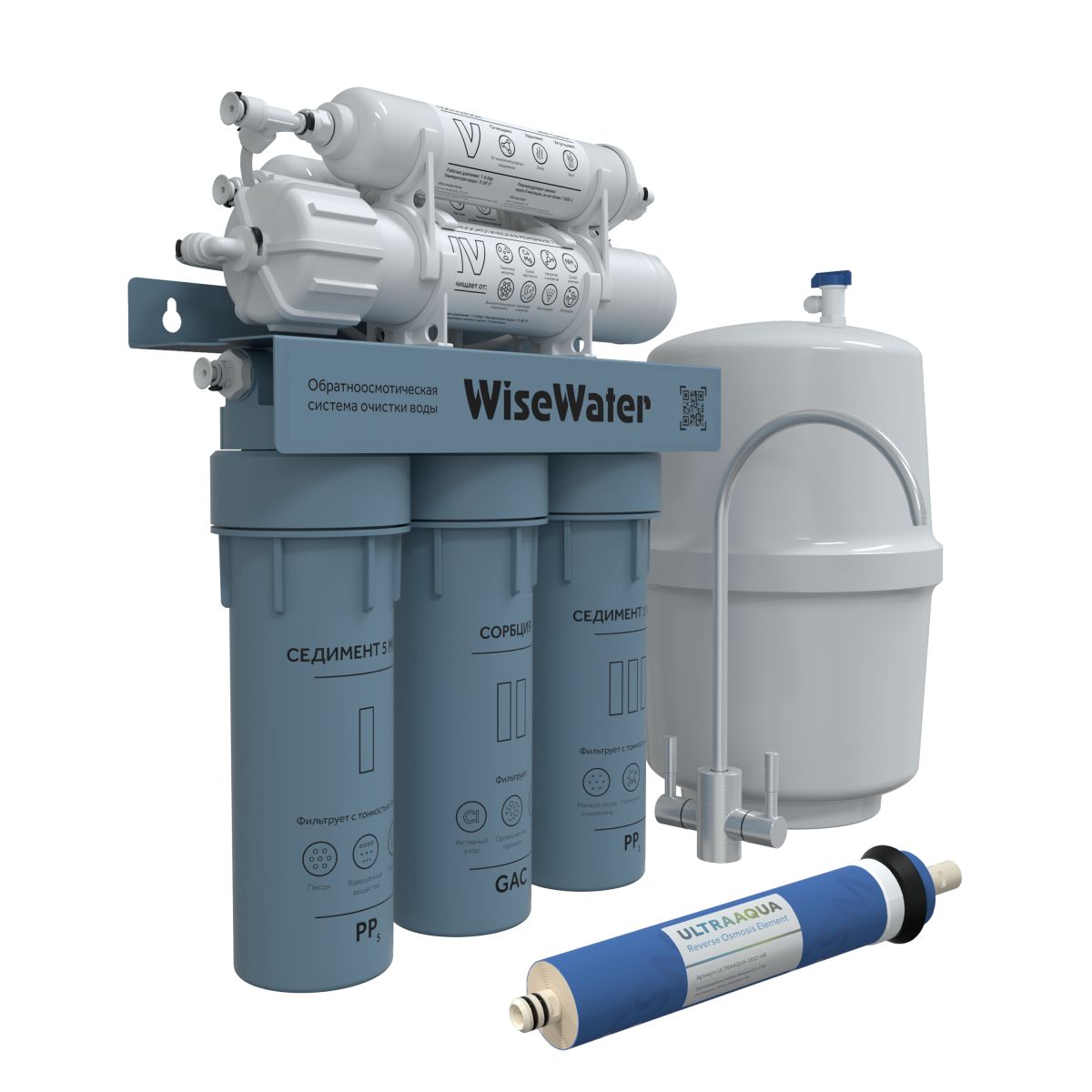 Читать все статьиБытовой осмос WiseWater Osmos Mineral с мембраной ULTRAAQUA