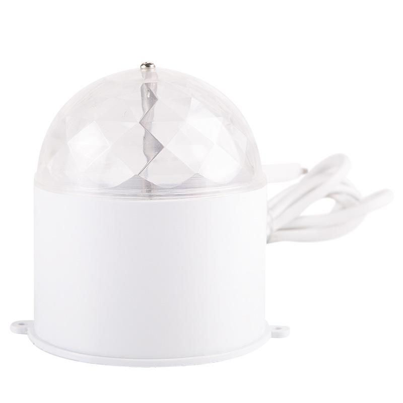 Диско-лампа в компактном корпусе работает от электрической сети с напряжением 230 Вольт, для подключения к розетке предусмотрен кабель длиной 1 метр со штепсельной вилкой на конце. Корпус выполнен в виде цилиндра из белого пластика. Под прозрачным куполом скрываются 3 светодиода RGB, которые переливаются разноцветными огнями. Верхняя часть конструкции приводится в движение моторчиком, вращающийся купол отбрасывает яркие блики на потолок и окружающие предметы. Диско-лампа создаст праздничное настроение и поможет организовать веселую вечеринку в любом месте: дома, в офисе, в кафе, на даче.