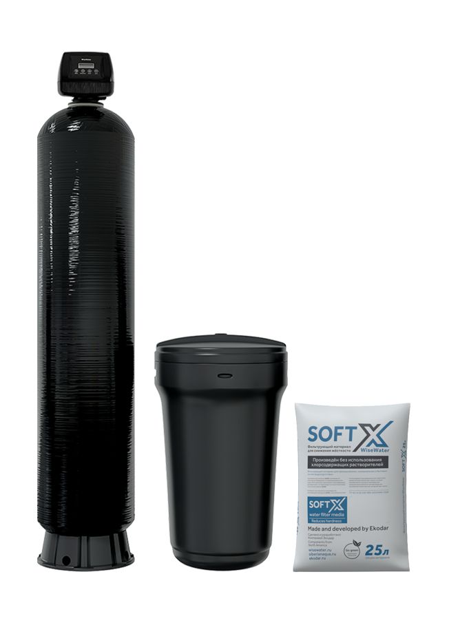 Система укомплектована ионообменной смолой SoftX. Она была произведена из канадского сырья без использования хлорсодержащих веществ, что гарантирует их отсутствие в конечной воде после использования загрузки.