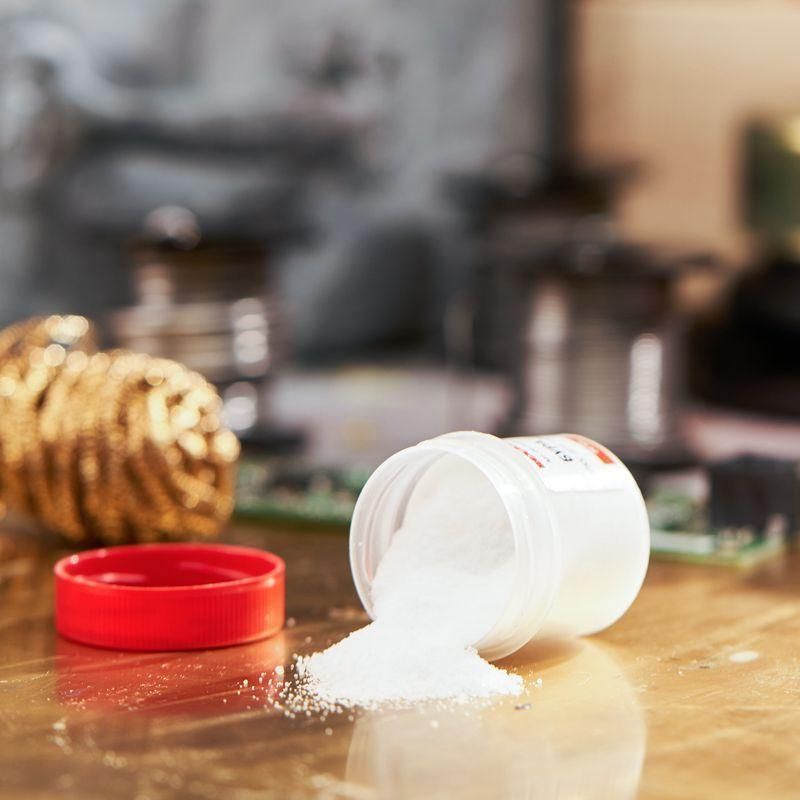 Флюс для пайки (бура) 20 гр. REXANT 09-3655 применяется как вспомогательное средство для паяльных работ и используется как средство подготовки поверхности для пайки, для удаления оксидов с поверхности. Содержит натриевую соль тетраборной кислоты. Рекомендуется при пайке углеродистых сталей, чугуна, меди и её сплавов медно-цинковыми и серебряными припоями, а таже при пайке мельхиора и сплавов драгоценных металлов в ювелирном деле. После пайки требует промывки горячей водой с использованием кисточки или щетки. При использовании необходимо строго соблюдать меры безопасности: при попадании на кожные покровы тщательно промыть поверхность мылом и водой; хранить в плотно закрытой таре вдали детей. Поставляется в емкости из пластмассы, с крышкой, объемом 20 г.