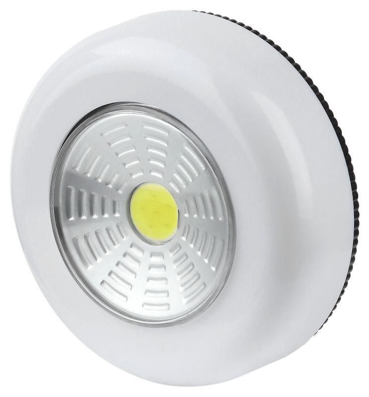 Компактный фонарь-пушлайт Трофи SB-101 отличный вариант бытовой подсветки. Монтируется на поверхность за считанные секунды удалить защитный слой с обратной стороны корпуса и приклеить. Помогает быстро и без проблем организовать дополнительную подсветку в затемненных местах дома или дачи в шкафу, подсобных помещениях, на стеллажах, полках, в ванной комнате, кладовой, коридоре, над рабочими столешницами кухни.Включается и выключается легким нажатием на корпус. Работает от 3 мизинчиковых батареек ААА. Одного комплекта алкалиновых элементов питания хватит на 5 часов непрерывной подсветки. Светит ярко благодаря современному COB-светодиоду. Источник света не перегорает и не тускнеет со временем.За счет эргономичной круглой формы, малого веса и базового белого цвета корпуса фонарик прекрасно смотрится в любом интерьере.