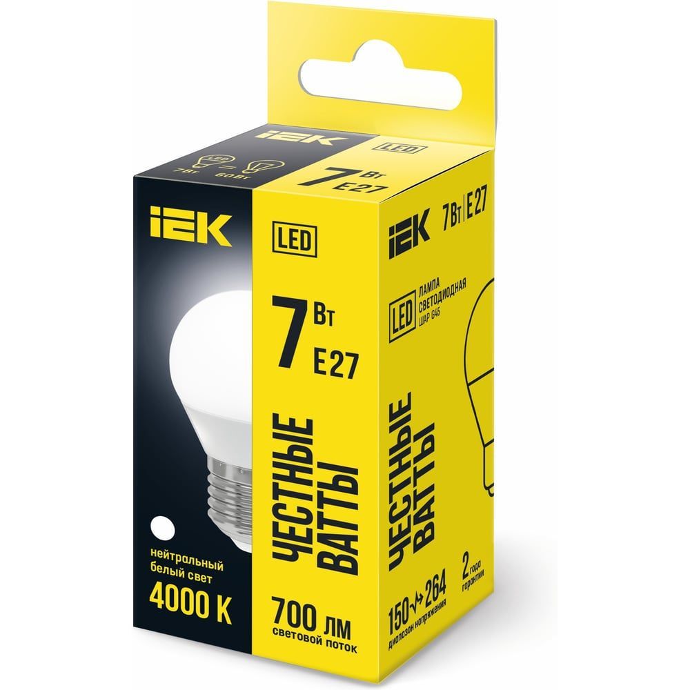 Читать все статьиЛампа 7Вт G45 шар 4000K E27 230В IEK
