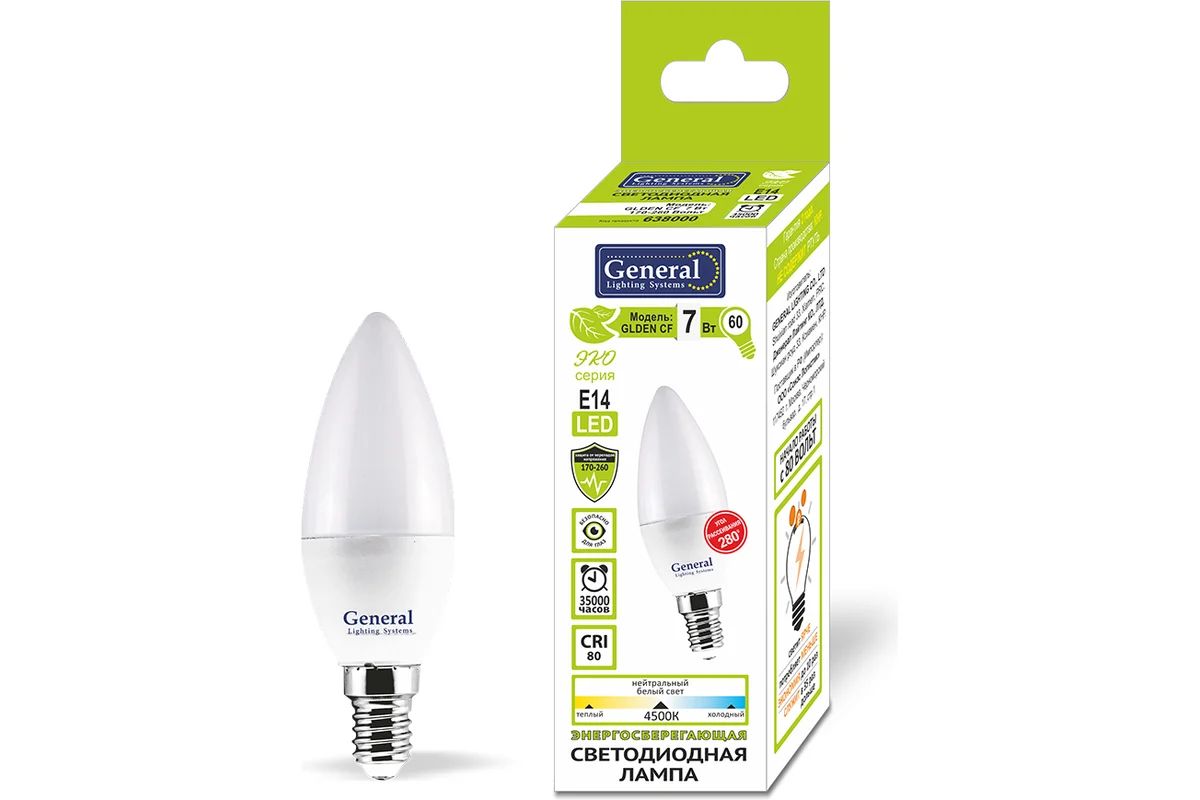 Читать все статьиЛампа General LED 7Вт E14 свеча 2700K