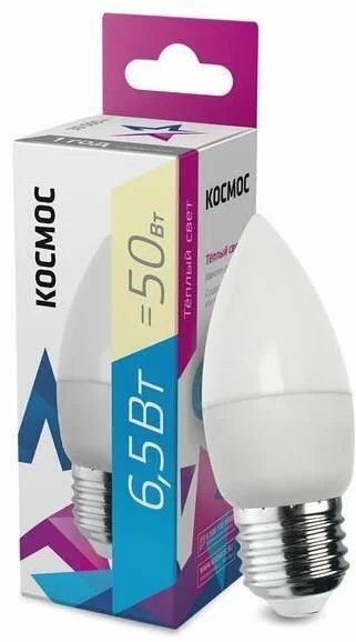 Читать все статьиЛампа Космос LED 6,5Вт Е27 свеча теплый свет