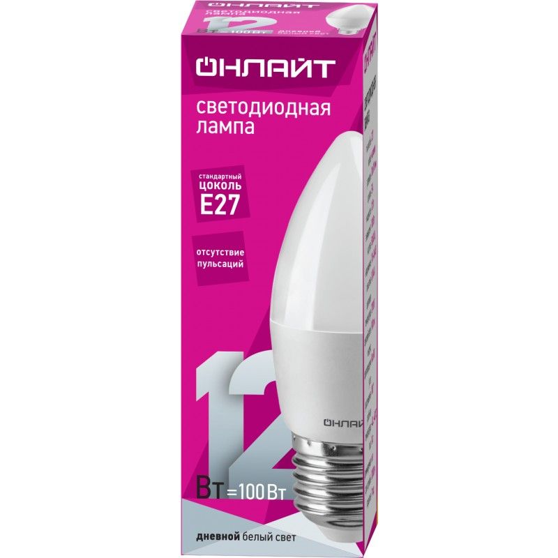 Читать все статьиЛампа ОНЛАЙТ 12Вт Е27 свеча 6500К С37 90 059