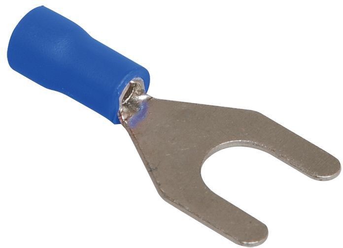 Наконечник вилочный предназначен для оконцевания опрессовкой проводов с медными жилами и используется при монтаже электрических узлов, где предусмотрено соответствующее контактное соединение на основе винтовой фиксации. Провести полный демонтаж крепежного соединения возможно, лишь ослабив винтовую фиксацию.