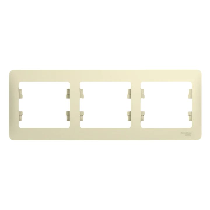 Рамка Systeme Electric (ранее Schneider Electric) серии Glossa (цвет бежевый) трёхместная. Устанавливается в горизонтальном положении. Выполнена из материала PС+ASA, стойкого к УФ-излучению и появлению царапин. Позволяет гармонично вписать электроустановочное изделие в интерьер помещения.