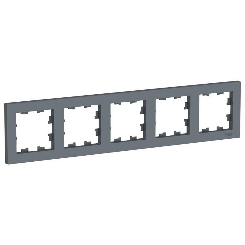 Рамка AtlasDesign (цвет грифель) пятиместная. - Устанавливается в вертикальном и горизонтальном положениях. - Лицевые детали из качественного ABS-пластика, устойчивого к царапинам и УФ-излучению. - Позволяет гармонично вписать электроустановочное изделие в интерьер помещения.