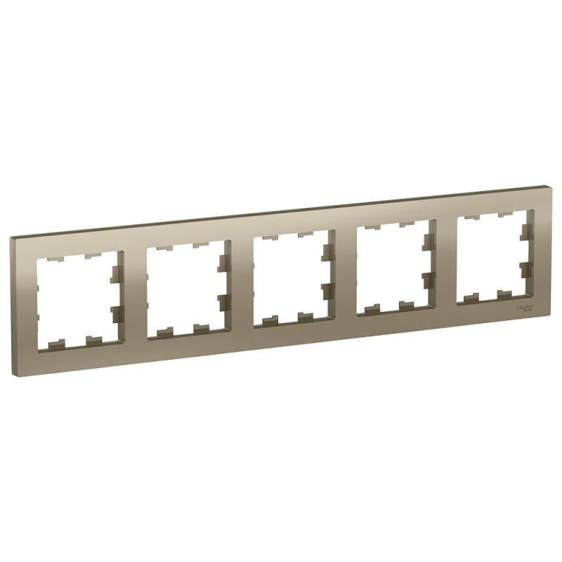 Рамка Schneider Electric AtlasDesign (цвет шампань) пятиместная. - Устанавливается в вертикальном и горизонтальном положениях. - Лицевые детали из качественного ABS-пластика, устойчивого к царапинам и УФ-излучению. - Позволяет гармонично вписать электроустановочное изделие в интерьер помещения.