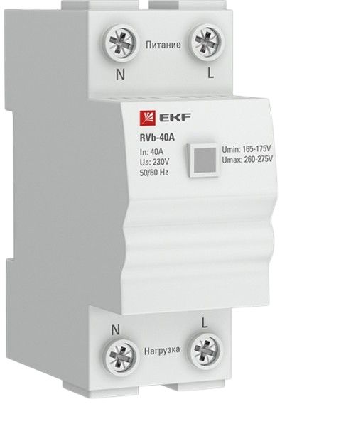 Реле напряжения rvb-40a EKF PROxima является микропроцессорным устройством и предназначено для постоянного контроля напряжения в однофазных сетях переменного тока, для защиты электроустановок от перепадов напряжения. Реле контролирует напряжение в сети в установленном диапазоне и при выходе напряжения за пределы диапазона отключает оборудование от сети электропитания с заданной выдержкой времени.