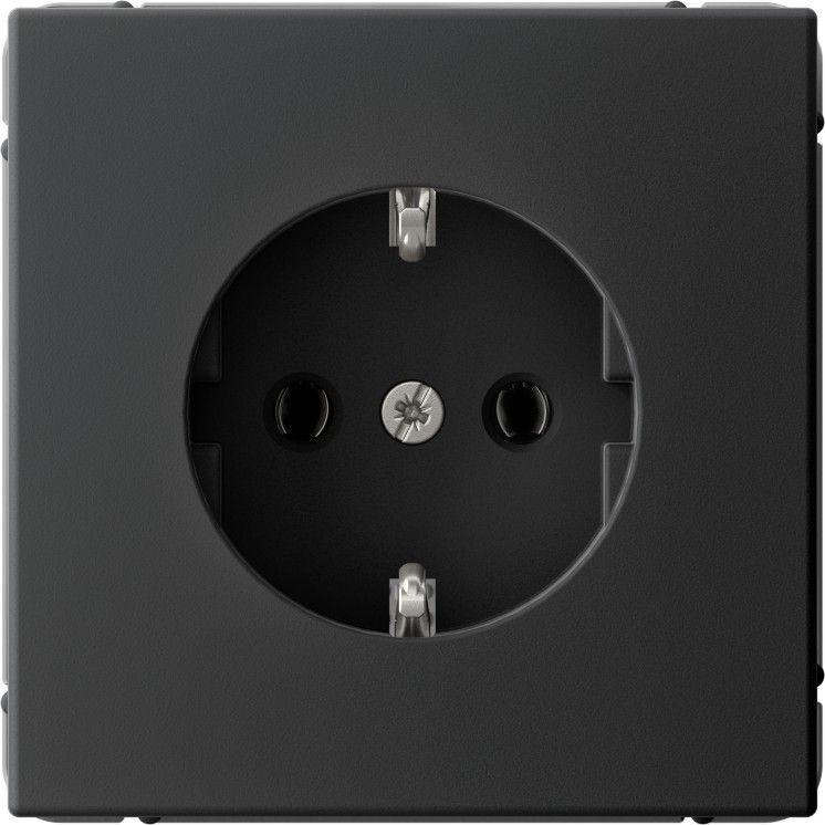 Механизм Systeme Electric серии ArtGallery в цвете карбон розетки одинарной с заземлением и без шторок подходит для сетей 250 В, на ток 16 А.