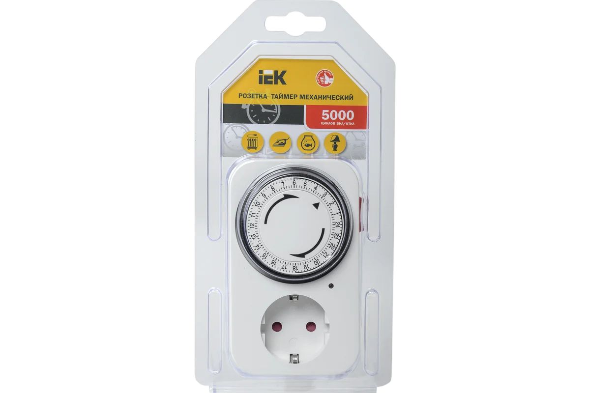 Читать все статьиРозетка-таймер механический индикация 15 мин 24 ч16А IEK