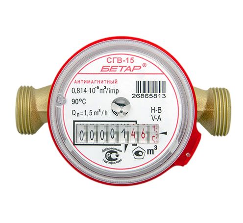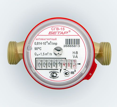 Счётчик воды БЕТАР 15 без сгонов (универсальный, антимагнитный)