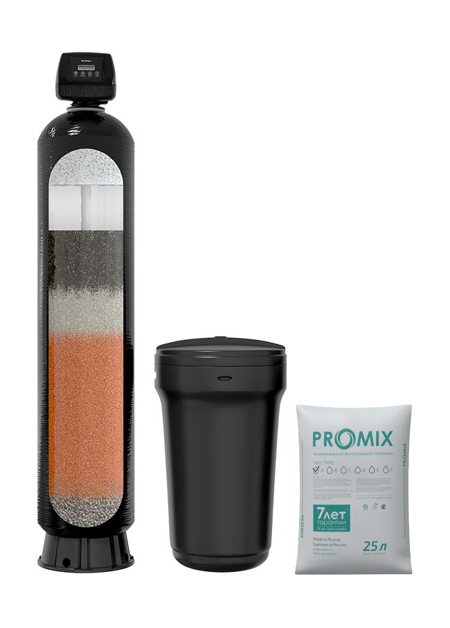 Система умягчает воду, а также удаляет железо, марганец, аммоний и органические соединения природного происхождения.