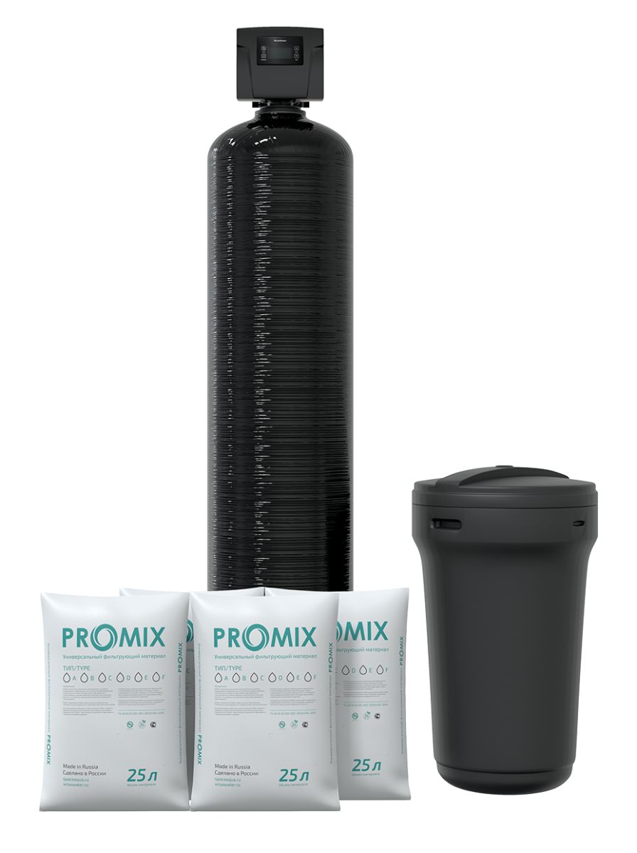 Система умягчения/обезжелезивания предназначена для комплексной очистки водопроводной и артезианской воды с одновременным умягчением, удалением железа, марганца, аммония и органических соединений природного происхождения. Применяется для защиты систем водоснабжения, водонагревательных приборов (в том числе стиральных и посудомоечных машин, водонагревателей и электрочайников) и уменьшения расхода моющих средств. В системе в качестве загрузки используется многофункциональный фильтрующий материал ProMix. Регенерация фильтра производится в автоматическом режиме с помощью электронного управляющего клапана Canature BNT по сигналу встроенного таймера или по сигналу счётчика. Для приготовления регенерационного раствора рекомендуется использовать таблетированную поваренную соль, производимую специально для этой цели. Корпуса Canature, используемые в оборудовании, изготовлены из пищевого пластика.