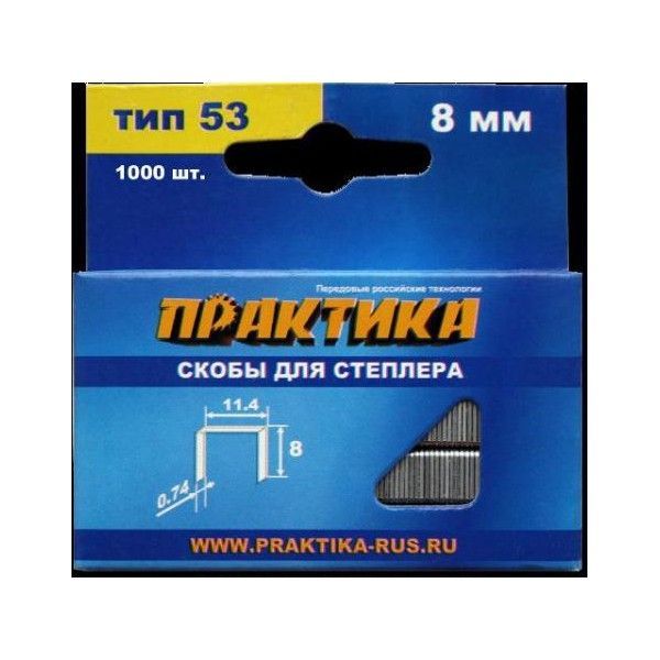 Скобы ПРАКТИКА для степлера, серия Мастер, 6 мм,Тип 53, 1000шт Тип 53 Ширина 11.4 мм Высота 6 мм Количество в упаковке 1000 шт. Вес брутто 0.01 кг Толщина 0.74 мм