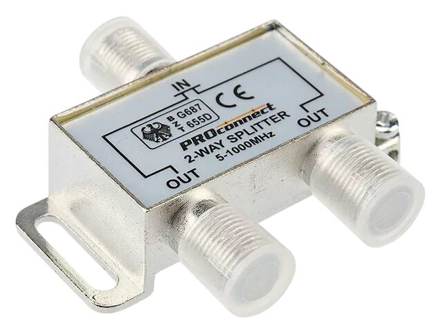 Телевизионный делитель или сплиттер предназначен для телевизионных систем и используется в домах и квартирах, где требуется подключить несколько телевизионных аппаратов к одной антенне. Сплиттер распределяет поступающий на вход сигнал поровну на его выходы, что обеспечивает одинаково четкое изображение на всех подключенных устройствах. Он имеет два выхода для сигнала и подключается с помощью стандартных F-разъемов. Делитель комплектуется необходимыми F-разъемами. Пайка внутри делителя осуществляется с использованием серебросодержащего припоя, что позволяет получить сигнал высокого качества и увеличить надежность. Делитель имеет надежный металлический корпус. Полная комплектация ТВ сплиттера (F-разъемы в комплекте) позволяет удобно и быстро монтировать телевизионный кабель и подключать аппаратуру. Данный делитель подходит для сигналов с частотой 5-1000 МГц, что соответствует стандартному эфирному телевидению.