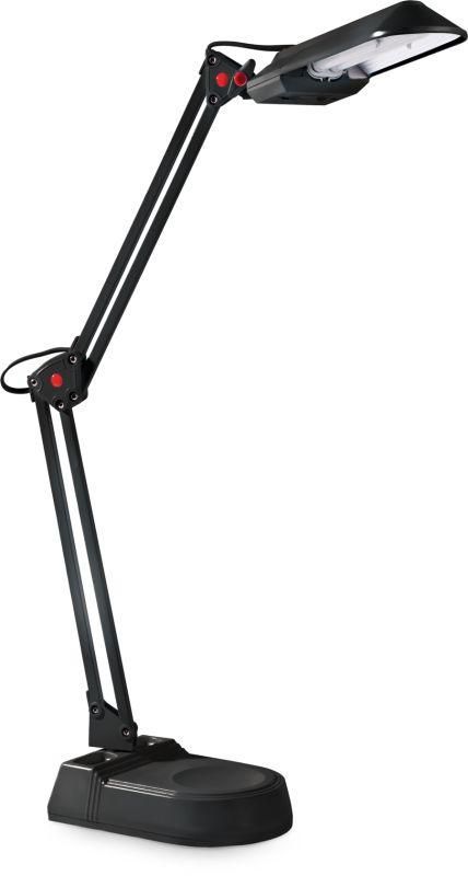 Светильник настольный KD-017A С02 черный служит для освещения рабочего места дома и в офисе. Стильный дизайн светильника украсит интерьер, оформленный в любом стиле. Плафон светильника изготовлен из пластика. Регулируется по углу наклона и повороту. Двухзвенная стойка, изготовленная из металла, позволяет менять высоту плафона в широком диапазоне. Два варианта установки светильника: струбцина и основание. Источник света- энергосберегающие люминесцентные лампы, которые потребляют всего 11 Вт и безопасны для глаз. Выключатель – нажимной на верхней части плафона. Длина провода 1,6 метра. Стиль офисный. Преимущества: - современный дизайн; - высокие показатели прочности; - продолжительный срок эксплуатации; - оптимальное соотношение цена/качество.