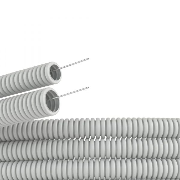 Читать все статьиТруба гофрированная 20 мм ПВХ серая 100 м