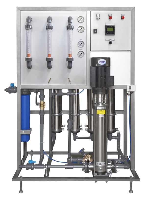 Коммерческая система обратного осмоса WWRO Ocean предназначена для снижения жёсткости и солесодержания воды в загородных домах, кафе, ресторанах, пивоварнях, пекарнях, лабораториях, на небольших промышленных объектах, для водоподготовки паровых котлов и парогенераторов. Система комплектуется сверхнизкоконапорными мембранными элементами Hydranautics, Saehan, РМ Нанотех или другими мембранными элементами по желанию заказчика. Бесшовные корпуса мембран с торцевыми входами выполнены из высококачественной нержавеющей стали. Стабильная и надёжная работа обеспечивается центробежным насосом высокого давления Grundfos с низким электропотреблением. Высокотехнологичное реле Danfoss KPI-35 защищает систему от низкого давления или отсутствия воды на входе («сухого хода»), что предохраняет насос от перегрева и выхода из строя. В WWRO Ocean есть возможность подключения блока промывки (CIP), который позволяет промывать мембранные элементы. Система оснащается контроллером для управления, а также кондуктометром (TDS метром) для контроля качества очищенной воды (электропроводности пермеата). WWRO Ocean имеет полуавтоматическое управление, при котором настройка выполняется с использованием регулирующих вентилей согласно предоставляемой инструкции и регламенту эксплуатации. В штатном режиме эксплуатации постоянное присутствие обслуживающего персонала не требуется. Основные преимущества: • Очистка воды на 99.8% от всех примесей, включая бактерии и вирусы, с помощью оригинальных мембранных элементов от ведущих мировых производителей • Высокое качество комплектующих и их сборки, тщательный инженерный подход • Удобство использования и обслуживания • Оригинальный компактный окрашенный корпус или корпус из нержавеющей стали • Встроенные индикаторы работы системы • Повышенная энергоэффективность благодаря качественным мембранным элементам и насосам Grundfos • Оригинальный привлекательный дизайн Коммерческие системы обратного осмоса WiseWater Ocean имеют ряд технических преимуществ по сравнению аналогичными системами, представленными на российском рынке: • Возможность регулировки расхода насоса во всем диапазоне. • Возможность подключения CIP (блока промывки), что позволяет проводить обслуживание без сложного демонтажа. • Возможность использования широкого диапазона применяемых сверхнизкоконапорных мембранных элементов. • Удобное подключение датчика уровня, насоса дозатора и датчика реагента. • Точная регулировка потоков пермеата, концентрата и рецикла. Состав установки • Входной кран • Фильтр тонкой очистки • Насос высокого давления • Клиновая задвижка (для регулировки потока после насоса) • Мембранный модуль • Шкаф управления • Датчик электропроводности • Манометр давления до фильтра тонкой очистки • Манометр давления после фильтра тонкой очистки • Манометр давления после мембранных модулей • Ротаметр рецикла (с регулировкой) • Ротаметр концентрата (с регулировкой) – сброс в дренаж • Ротаметр пермеата • Обратный клапан на линии рецикла • Реле низкого давления (защита от сухого хода) • Входной электромагнитный клапан • Электромагнитный клапан гидравлической промывки • Коммутационная коробка для подключения датчика уровня • Коммутационная коробка для подключения датчика реагента • Розетка (евростандарт, с заземлением)